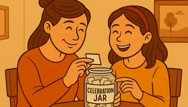 Use a weekly “Celebration Jar” where family members drop notes of encouragment